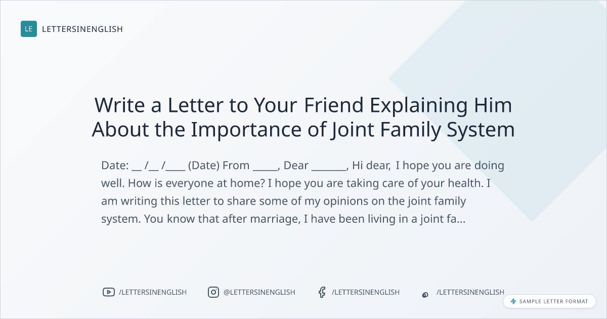 Sample Letter to Friend Explaining Him About the Importance of Joint Family System