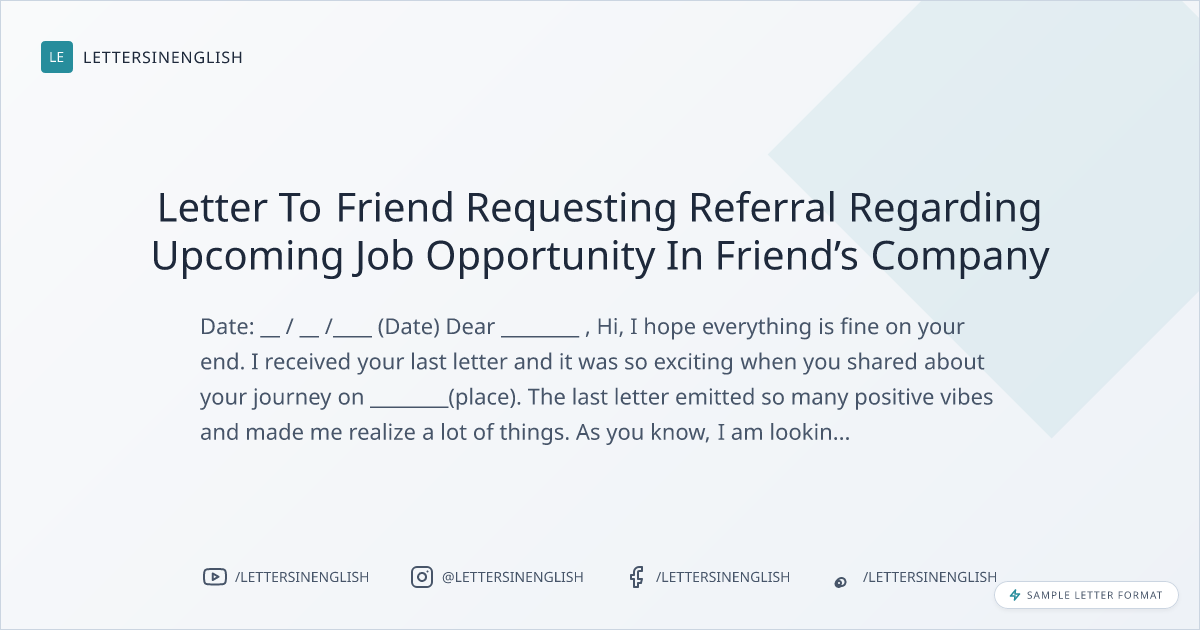 Letter To Friend Requesting Referral Regarding Upcoming Job Opportunity In Friend’s Company