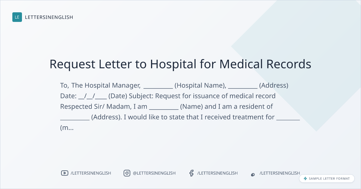 Request Letter to Hospital for Medical Records