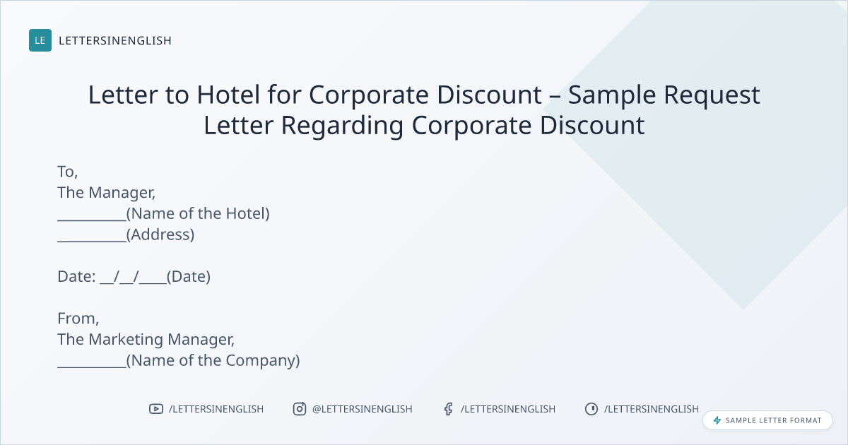Letter to Hotel for Corporate Discount – Sample Request Letter Regarding Corporate Discount