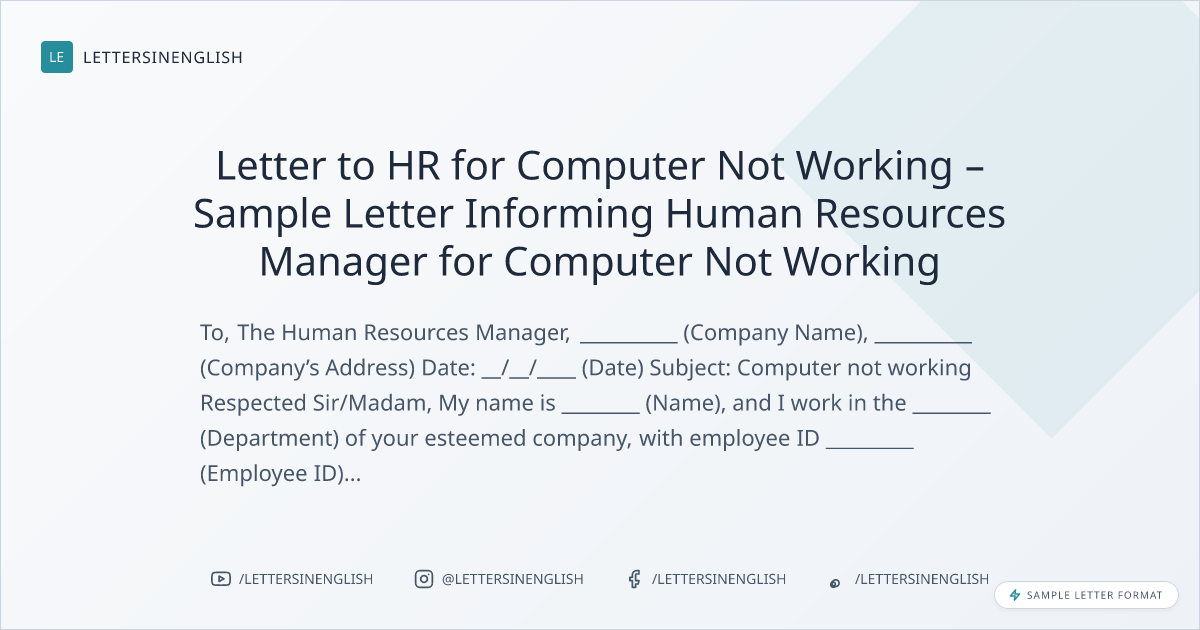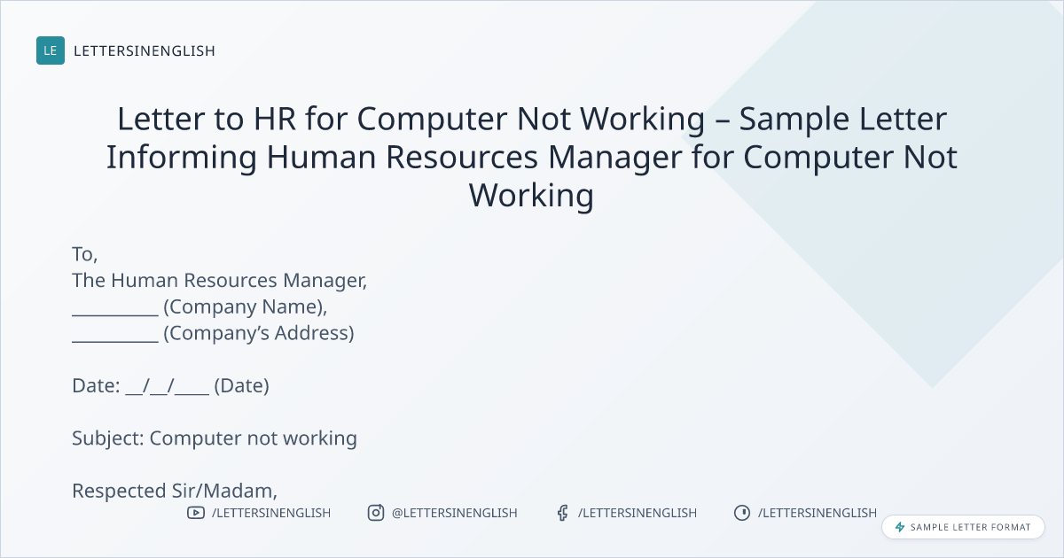 Letter to HR for Computer Not Working – Sample Letter Informing Human Resources Manager for Computer Not Working