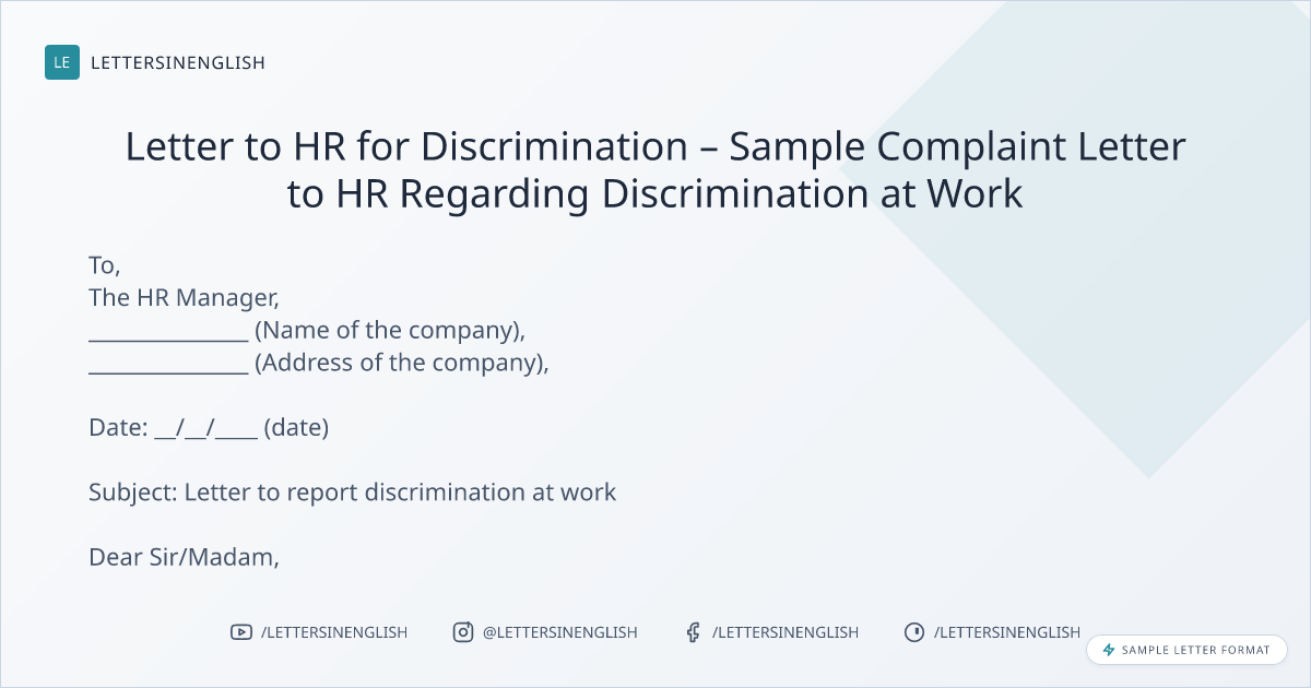 Letter to HR for Discrimination – Sample Complaint Letter to HR Regarding Discrimination at Work