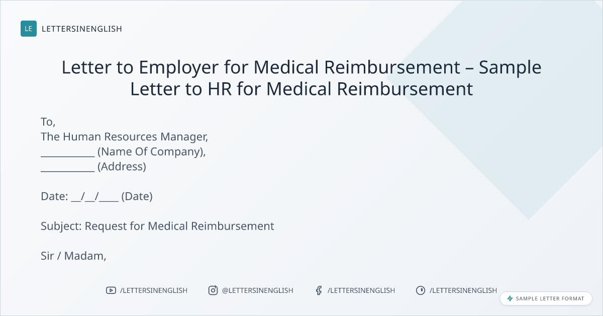 Letter to Employer for Medical Reimbursement – Sample Letter to HR for Medical Reimbursement