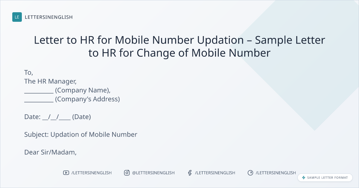 Letter to HR for Mobile Number Updation – Sample Letter to HR for Change of Mobile Number