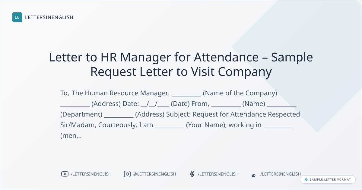 Letter to HR Manager for Attendance – Sample Request Letter to Visit Company
