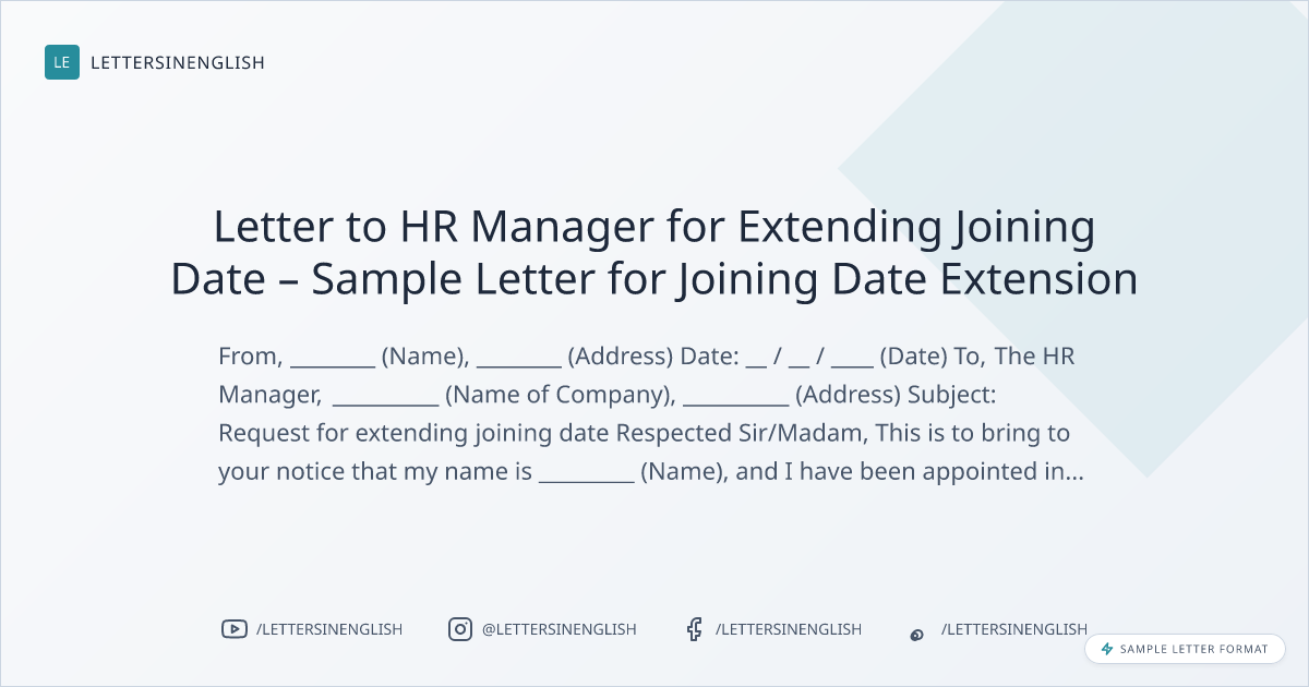 Letter to HR Manager for Extending Joining Date – Sample Letter for Joining Date Extension