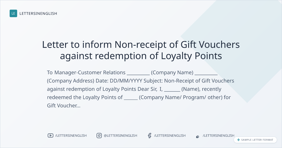 Letter to inform Non-receipt of Gift Vouchers against redemption of Loyalty Points