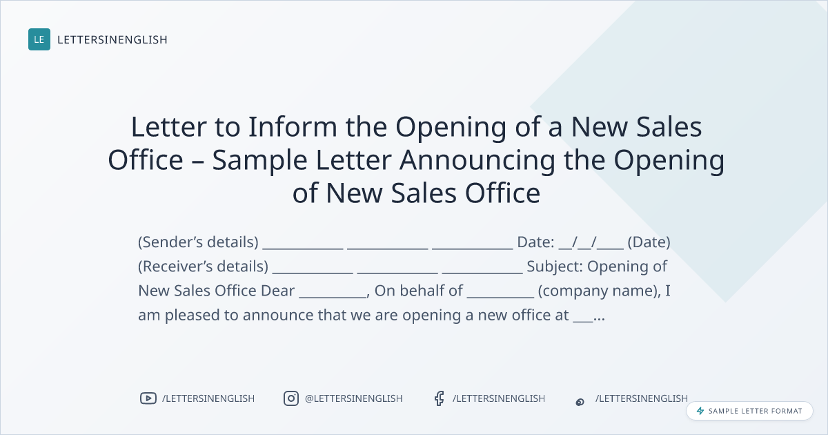 Letter to Inform the Opening of a New Sales Office – Sample Letter Announcing the Opening of New Sales Office
