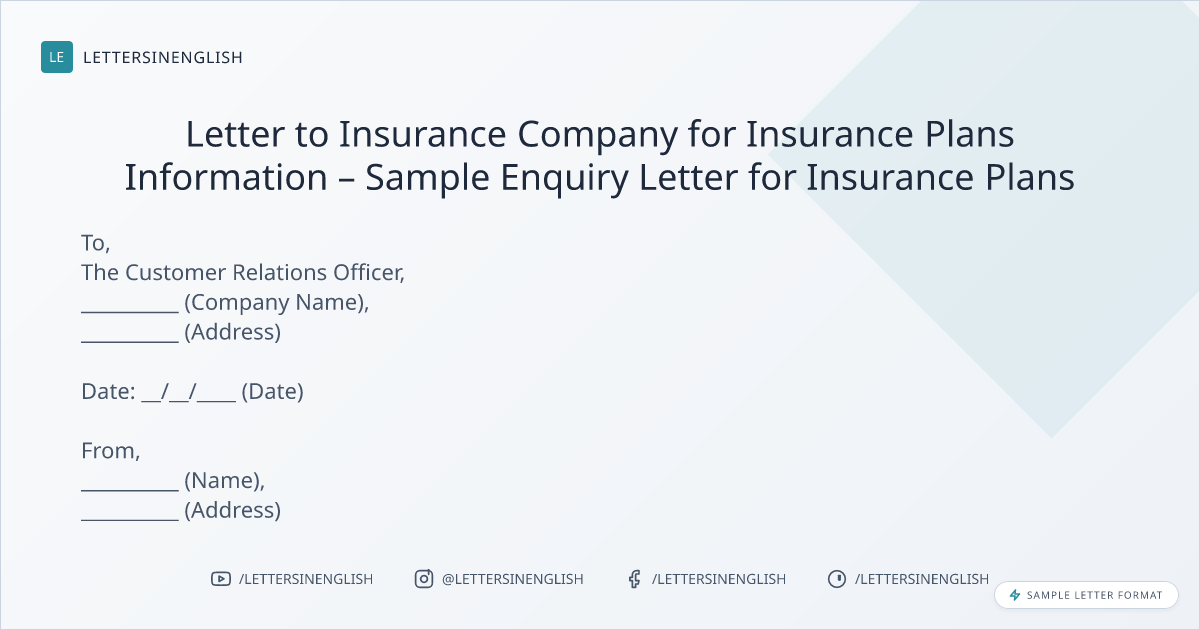 Letter to Insurance Company for Insurance Plans Information – Sample Enquiry Letter for Insurance Plans