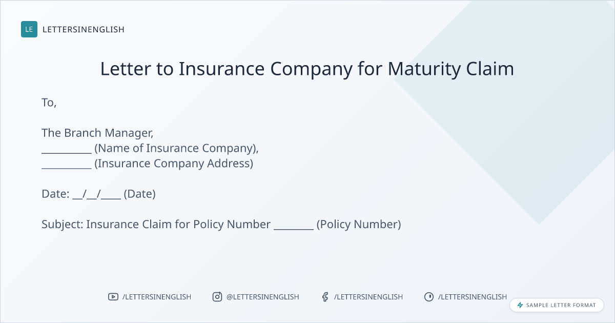 Letter to Insurance Company for Maturity Claim