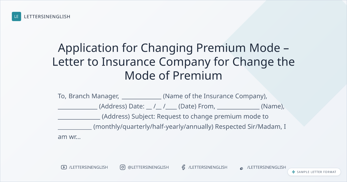 Application for Changing Premium Mode – Letter to Insurance Company for Change the Mode of Premium