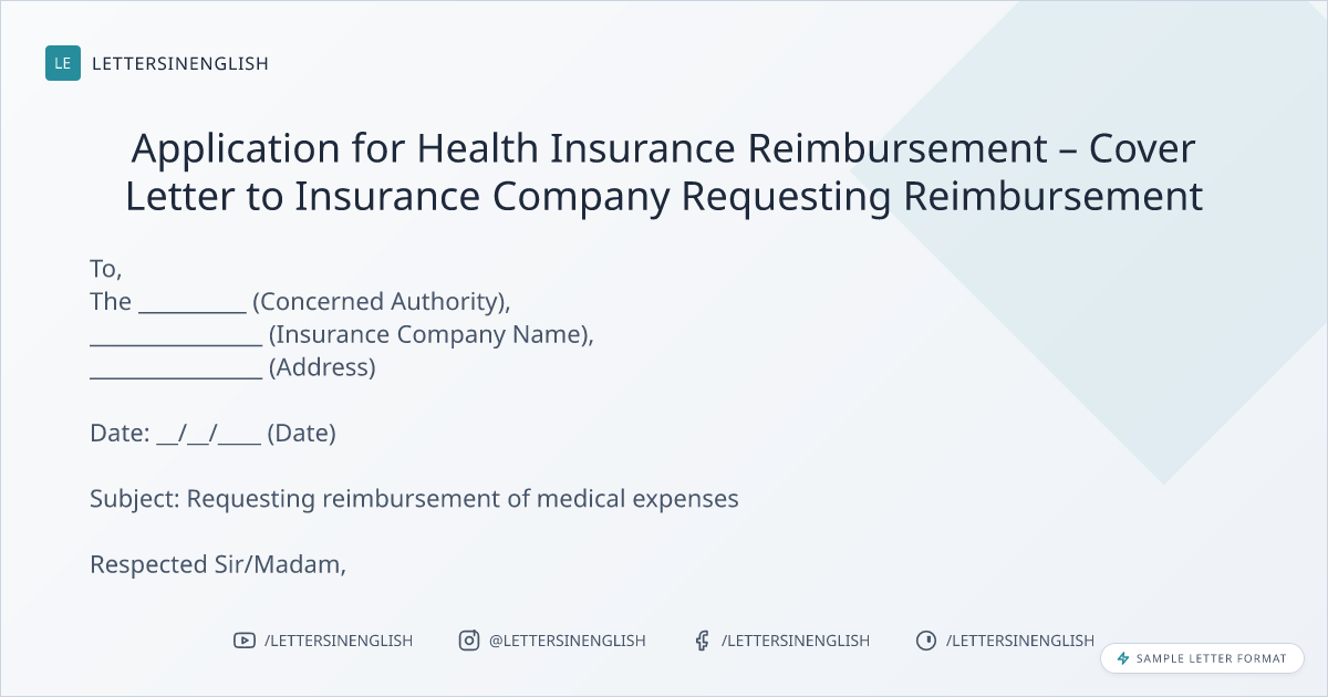 Application for Health Insurance Reimbursement – Cover Letter to Insurance Company Requesting Reimbursement