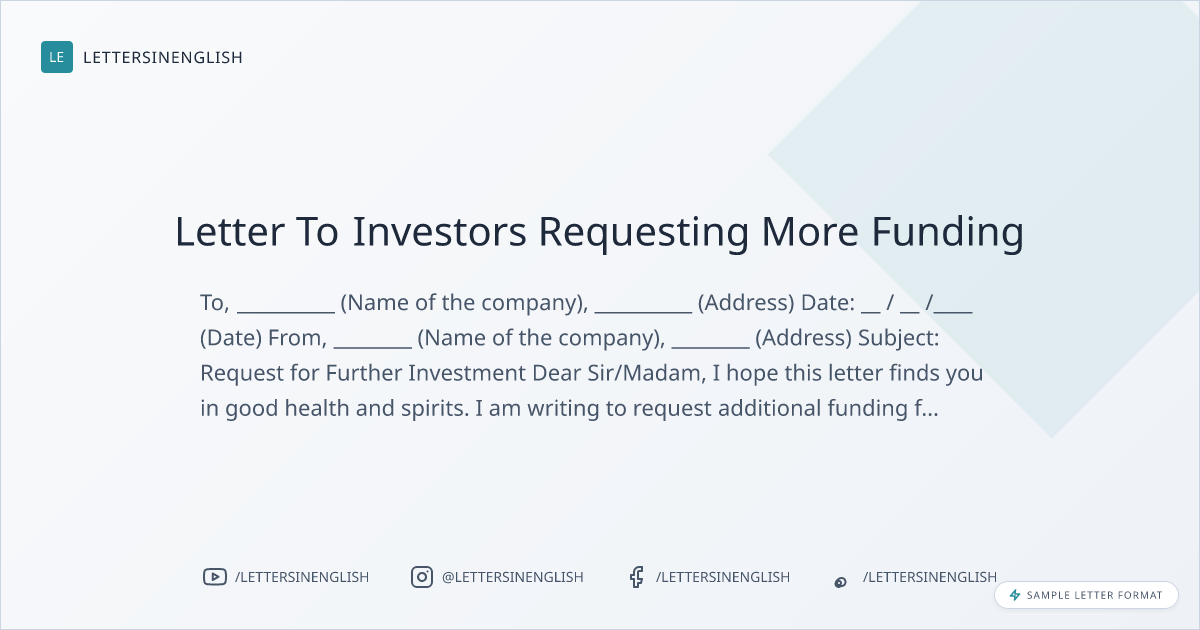 Request Letter To Investors Requesting More Funding
