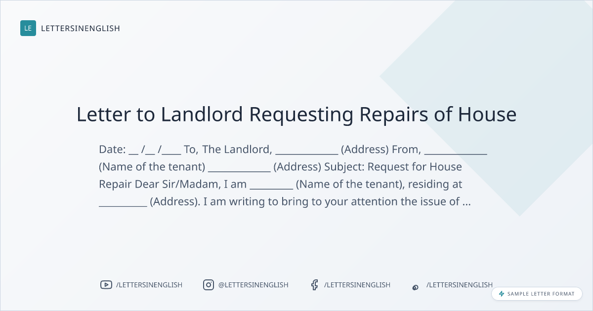 House Repair Request Letter to Landlord
