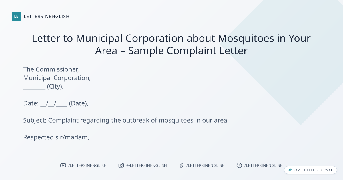 Letter to Municipal Corporation about Mosquitoes in Your Area – Sample Complaint Letter