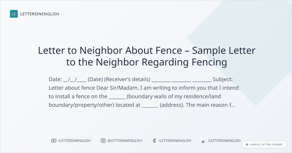 Letter to Neighbor About Fence – Sample Letter to the Neighbor Regarding Fencing
