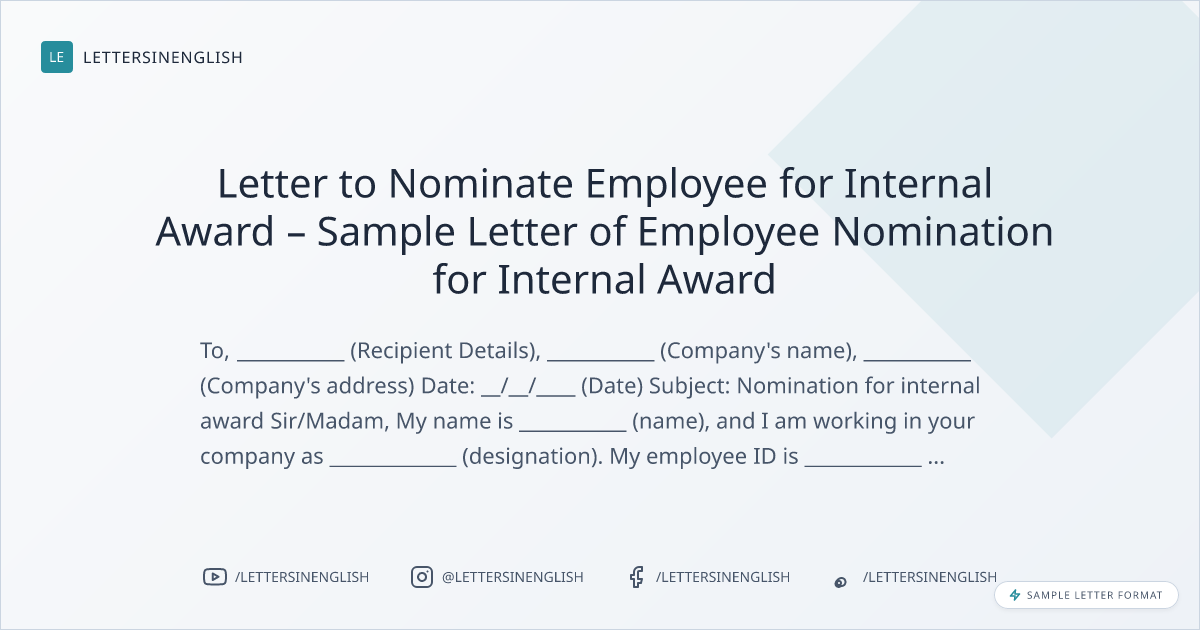 Letter to Nominate Employee for Internal Award – Sample Letter of Employee Nomination for Internal Award