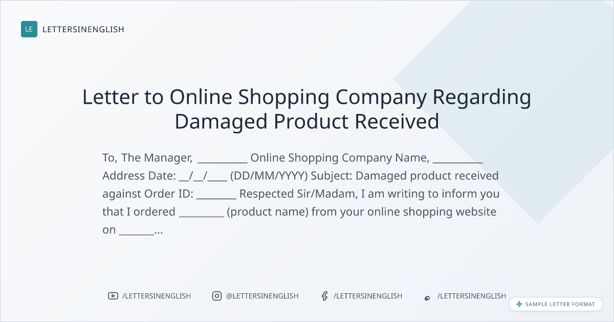 When writing a letter to an online shopping company regarding a damaged product received, it's crucial to clearly state the issue, provide relevant details such as order ID and delivery date, and express your expectations for resolution, whether it's a replacement or a refund. Maintain a polite and professional tone throughout the letter to increase the likelihood of a positive response.