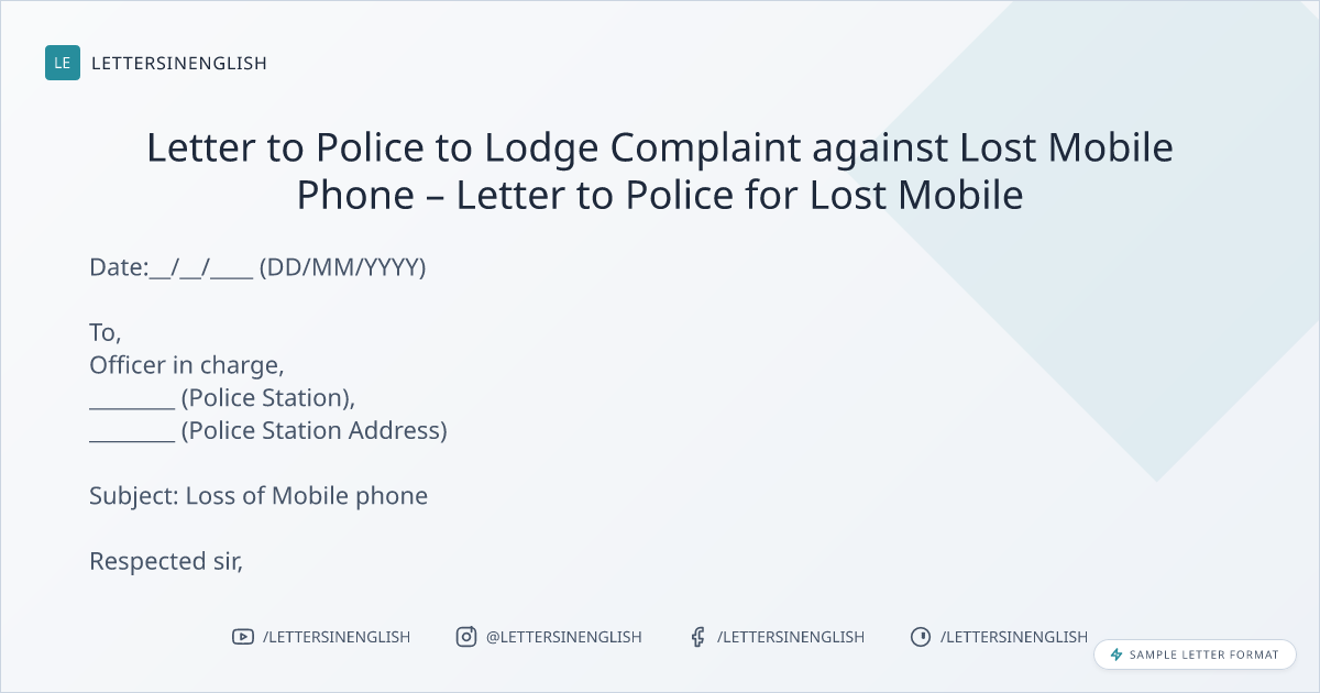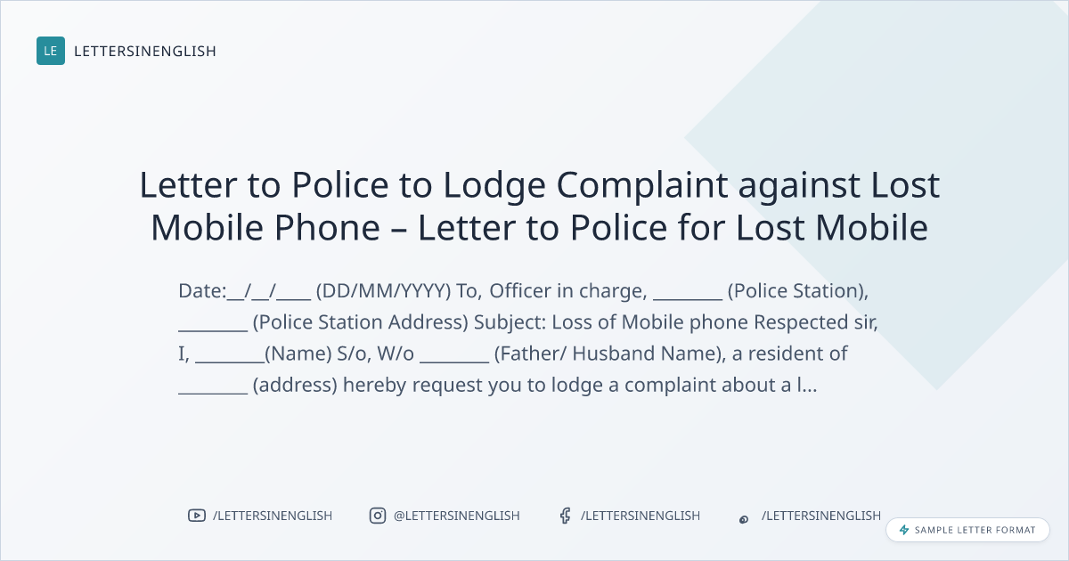 Letter to Police to Lodge Complaint against Lost Mobile Phone – Letter to Police for Lost Mobile