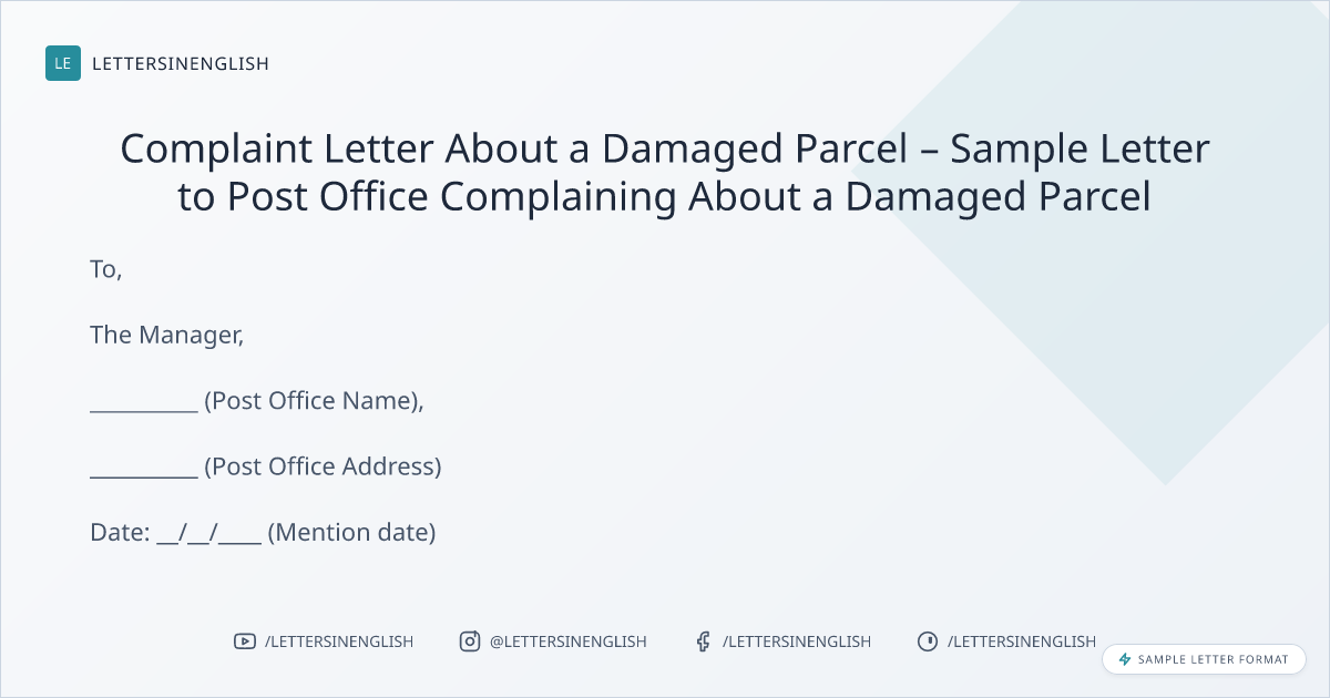 Complaint Letter About a Damaged Parcel – Sample Letter to Post Office Complaining About a Damaged Parcel