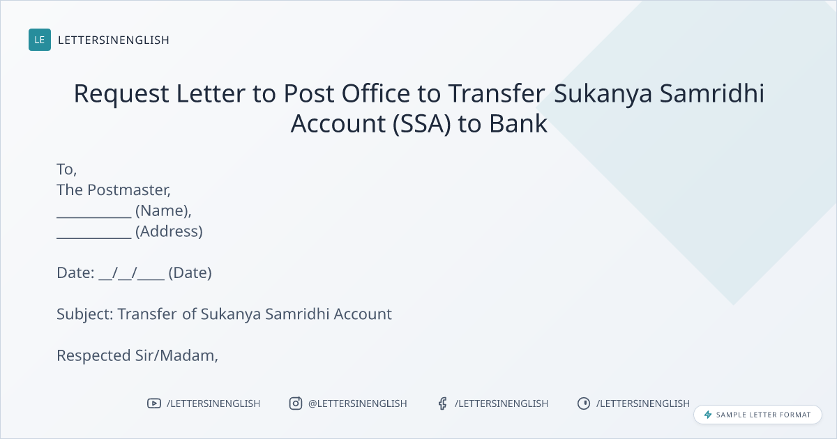 Sample Letter for Transfer of Sukanya Samridhi Account