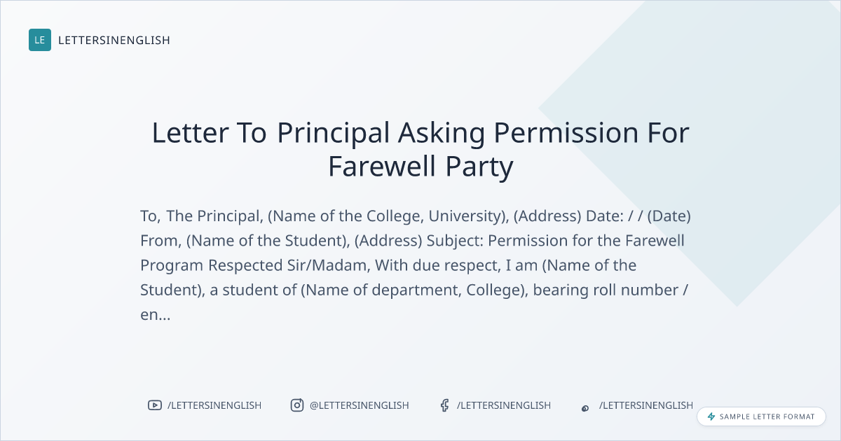 Letter To Principal Asking Permission For Farewell Party