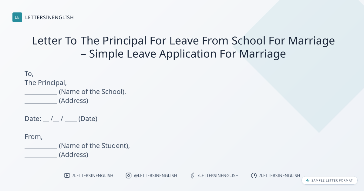 Letter To The Principal For Leave From School For Marriage – Simple Leave Application For Marriage