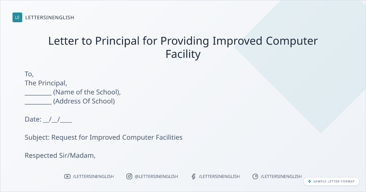 Letter to Principal for Providing Improved Computer Facility