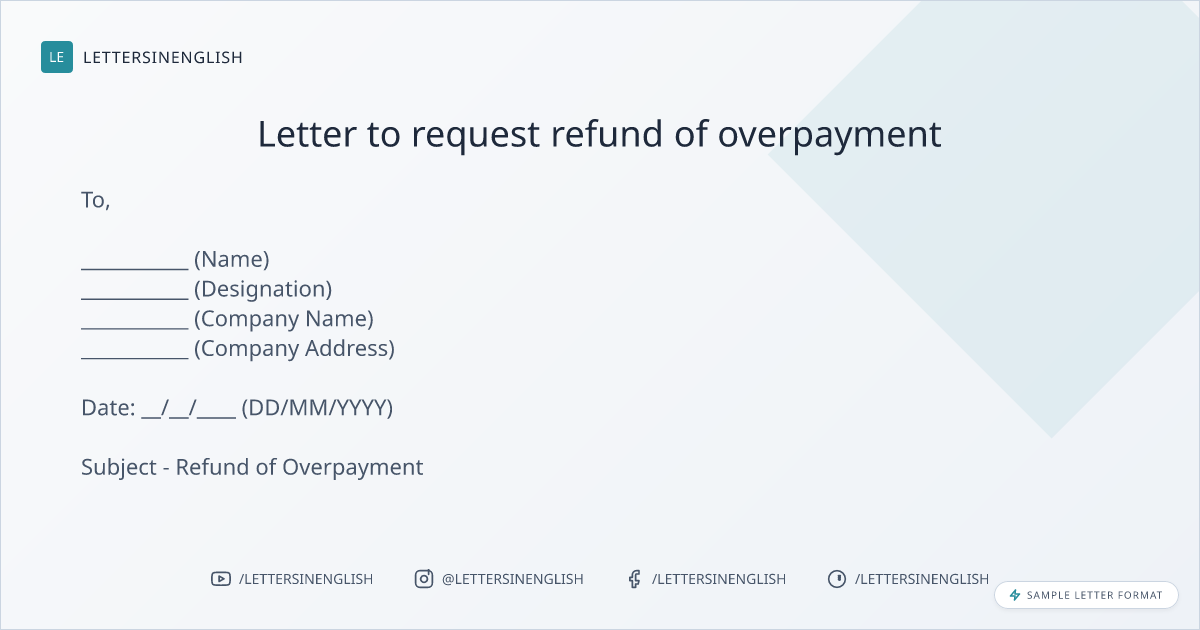 Letter to request refund of overpayment