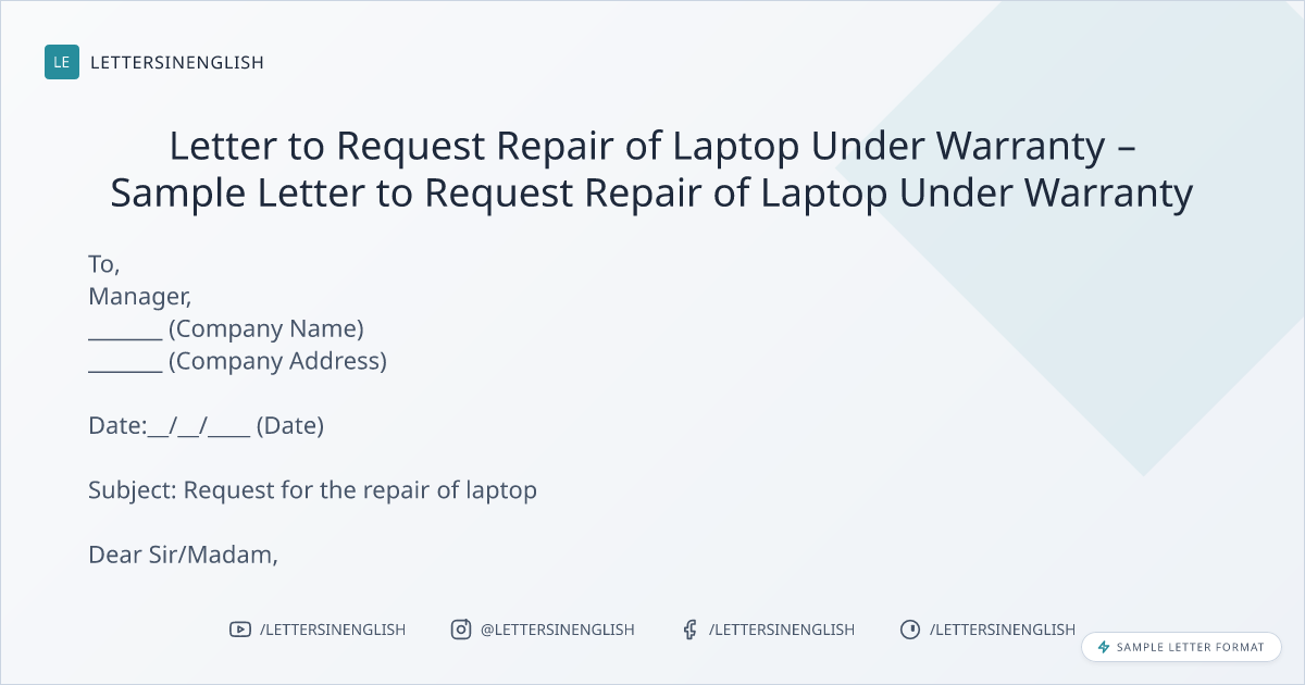Letter to Request Repair of Laptop Under Warranty – Sample Letter to Request Repair of Laptop Under Warranty