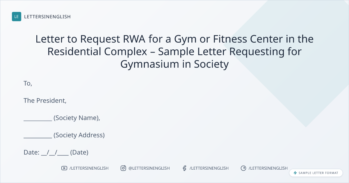 Letter to Request RWA for a Gym or Fitness Center in the Residential Complex – Sample Letter Requesting for Gymnasium in Society