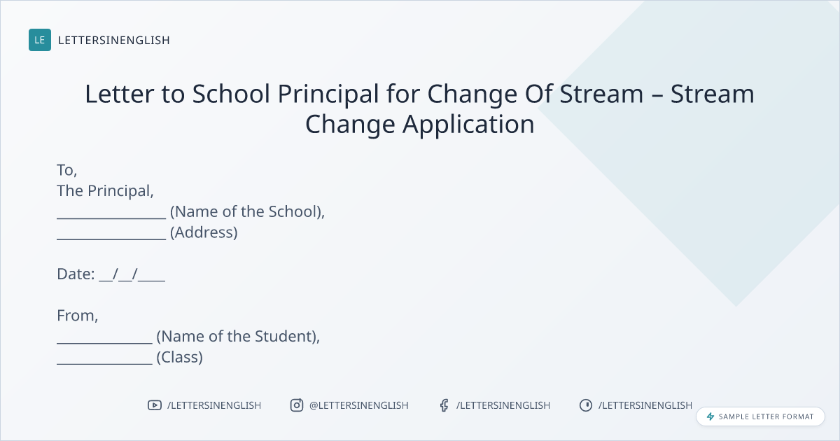 Letter to School Principal for Change Of Stream – Stream Change Application