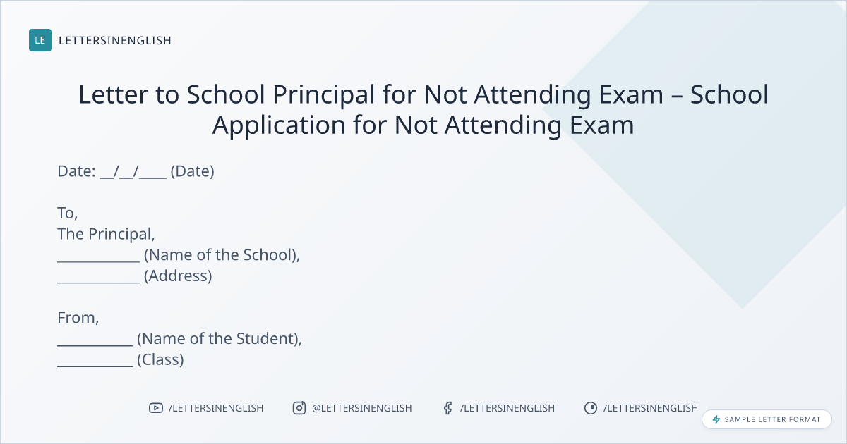 Letter to School Principal for Not Attending Exam – School Application for Not Attending Exam