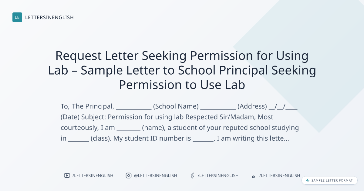 Request Letter Seeking Permission for Using Lab – Sample Letter to School Principal Seeking Permission to Use Lab
