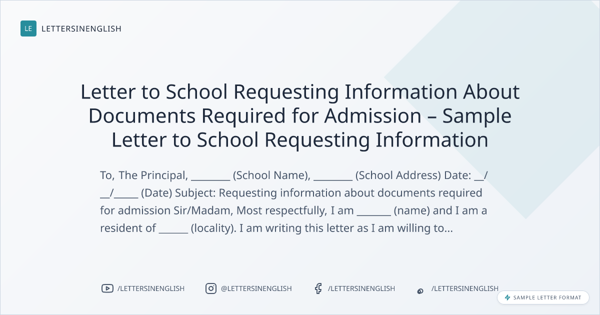 Letter to School Requesting Information About Documents Required for Admission – Sample Letter to School Requesting Information