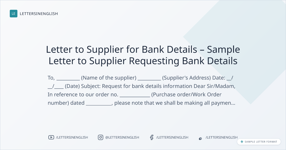 Letter to Supplier for Bank Details – Sample Letter to Supplier Requesting Bank Details