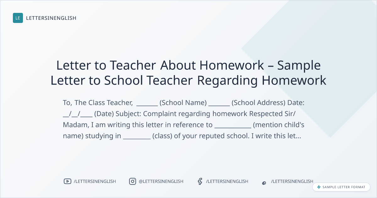 Letter to Teacher About Homework – Sample Letter to School Teacher Regarding Homework