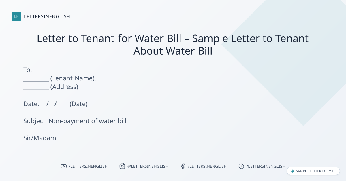 Letter to Tenant for Water Bill – Sample Letter to Tenant About Water Bill