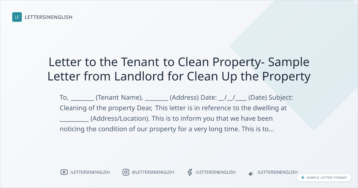 Letter to the Tenant to Clean Property- Sample Letter from Landlord for Clean Up the Property