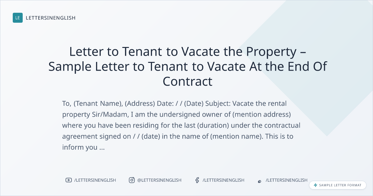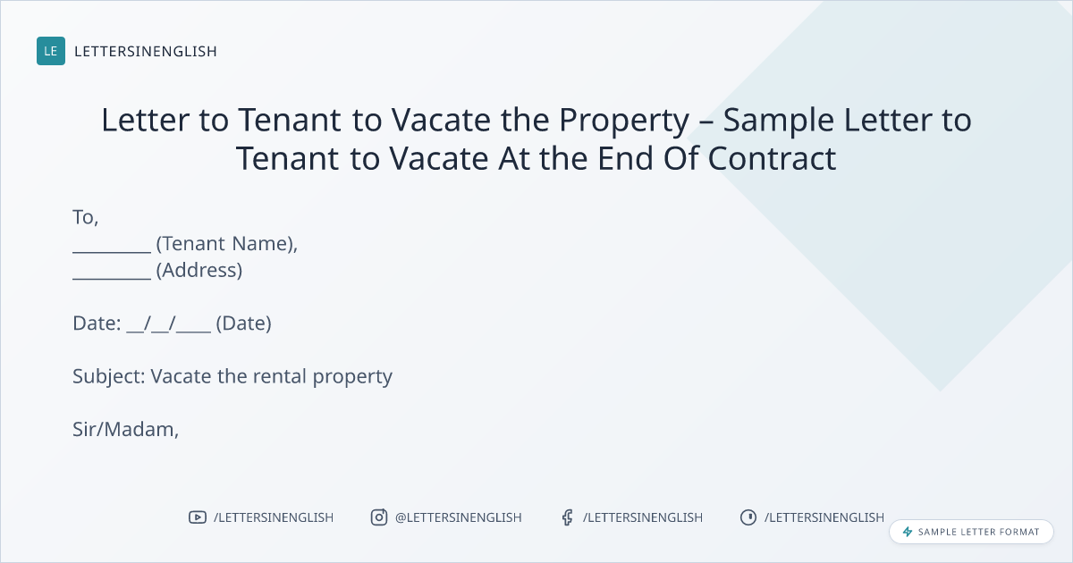 Letter to Tenant to Vacate the Property – Sample Letter to Tenant to Vacate At the End Of Contract