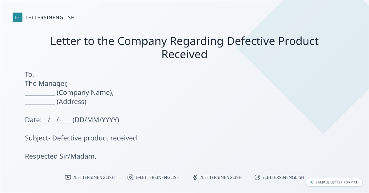 Letter to the Company Regarding Defective Product Received