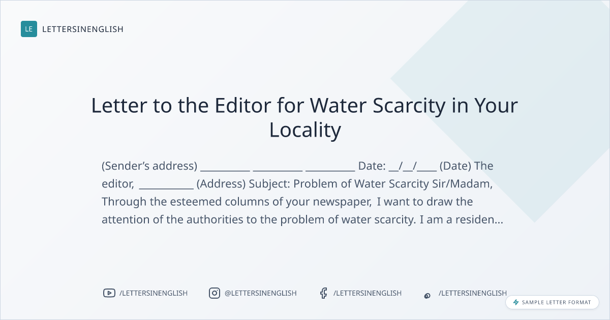 Sample Letter to the Editor for Water Scarcity in Your Locality