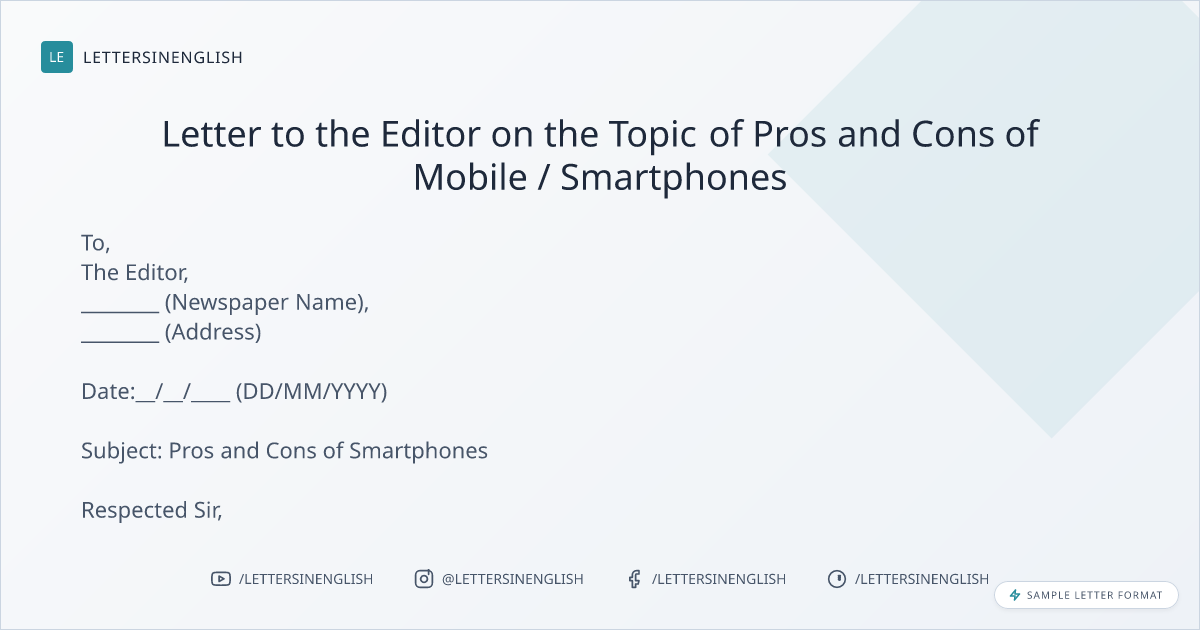 Letter to the Editor on the Topic of Pros and Cons of Mobile / Smartphones