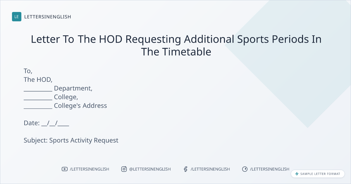 Letter To The HOD Requesting Additional Sports Periods In The Timetable