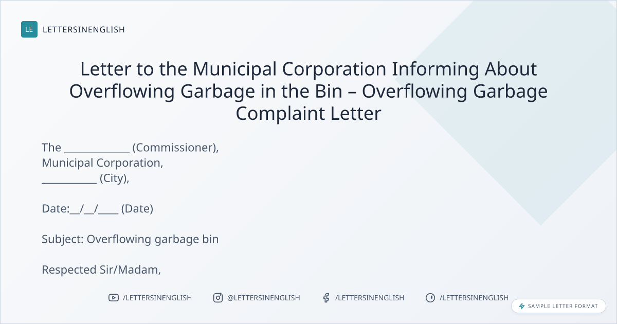 Letter to the Municipal Corporation Informing About Overflowing Garbage in the Bin – Overflowing Garbage Complaint Letter