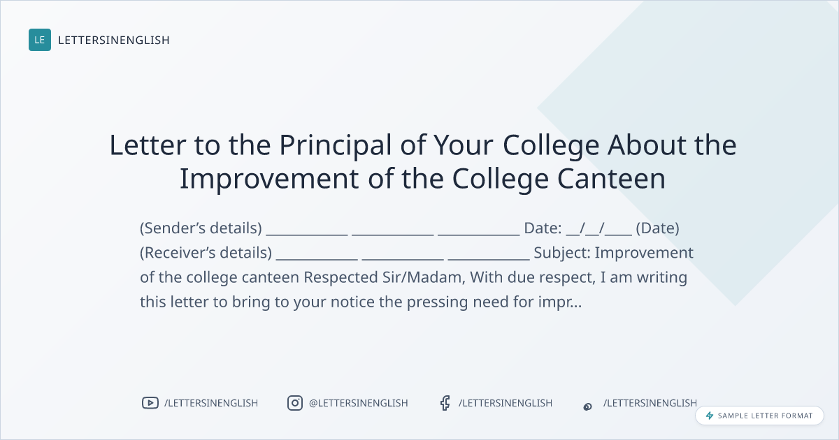 Letter to the Principal of Your College About the Improvement of the College Canteen