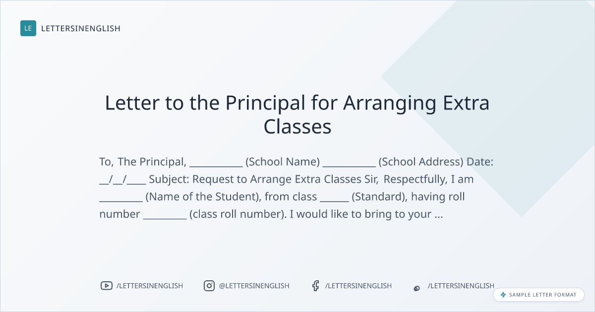 Letter to the Principal for Arranging Extra Classes