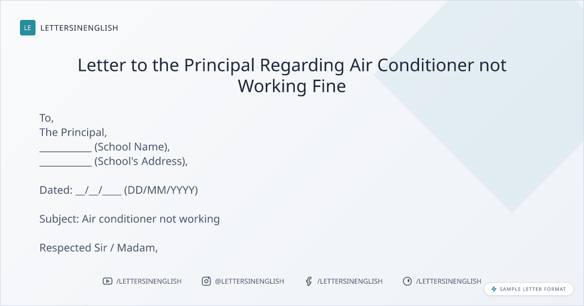 Letter to the Principal Regarding Air Conditioner not Working Fine