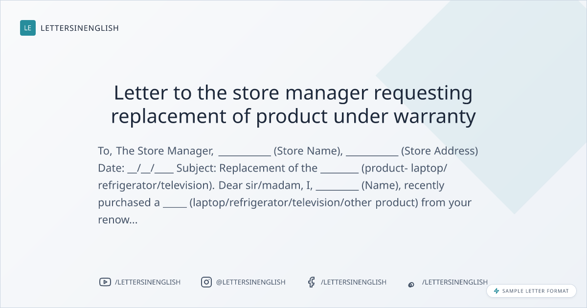 Subject- Replacement of the ________ (product- laptop/refrigerator/television).