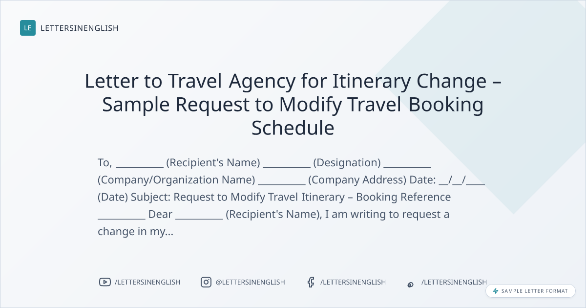 Letter to Travel Agency for Itinerary Change – Sample Request to Modify Travel Booking Schedule